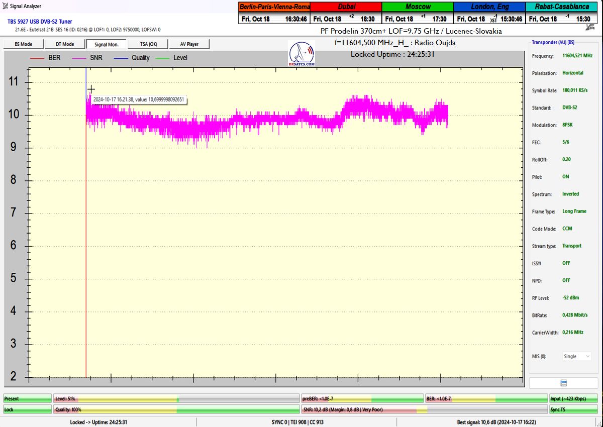 in quality to around the noise threshold (Q=20%) recorded on 15.10.2024 at 6:07 a.m., I demonstrably achieved 100% reception stability without a single