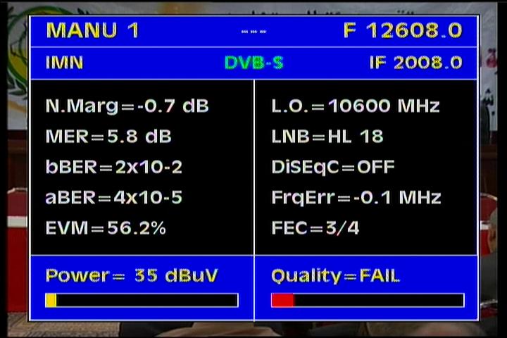 Arabsat 2B at 30.5°E - KU footprint : 12 608 V feed IMN Media Iraq