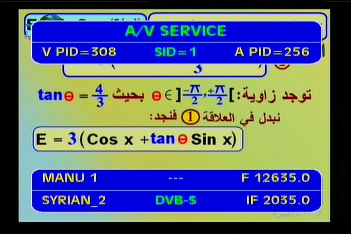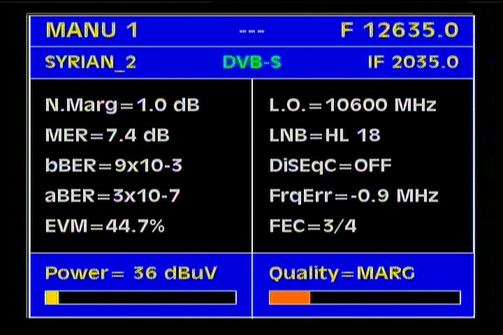 Arabsat 2B at 30.5°E - KU footprint : 12 635 V Syria TV 2