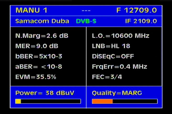 Arabsat 2B at 30.5°E - KU footprint : 12 709 V feed Samacom Dubai