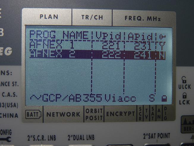 ---SR--- | ---FEC--- | ---Footprint--- | ---Antenna--- | ---Video/Encryption--- |