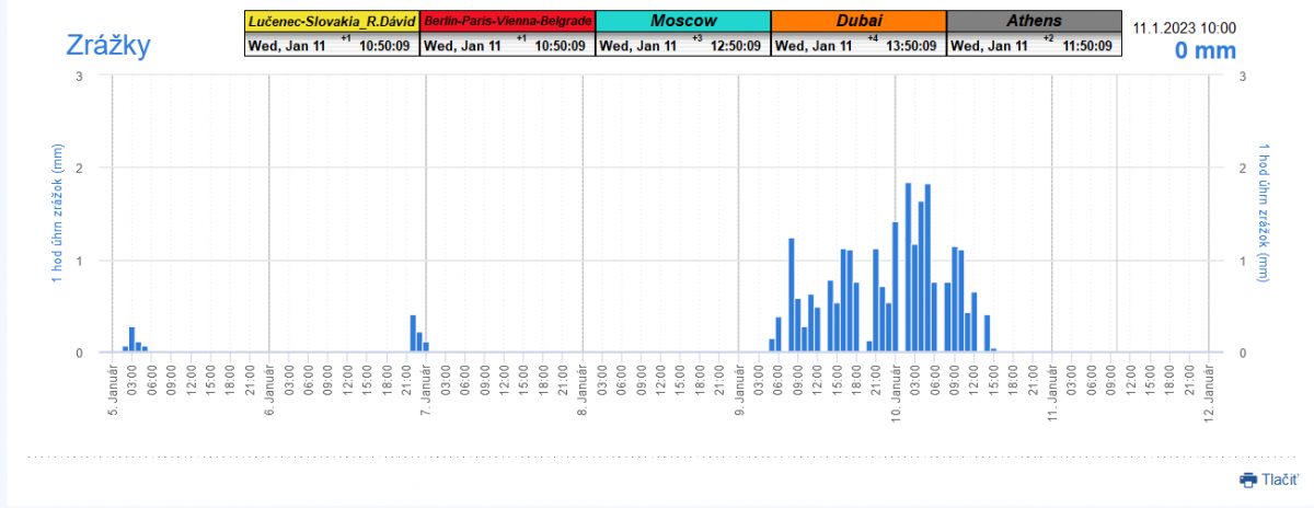 od +1 do +11°C,bol zaznamenaný len nízky úhrn dažďových zrážok dňa 6.1.2023 a naopak vysoký úhrn zrážok od 9 do 10.1.2023 pri minimálnej rýchlosti vetra.