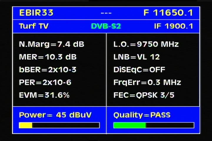 Eurobird 3 at 33,0°E : percent Q & stream data