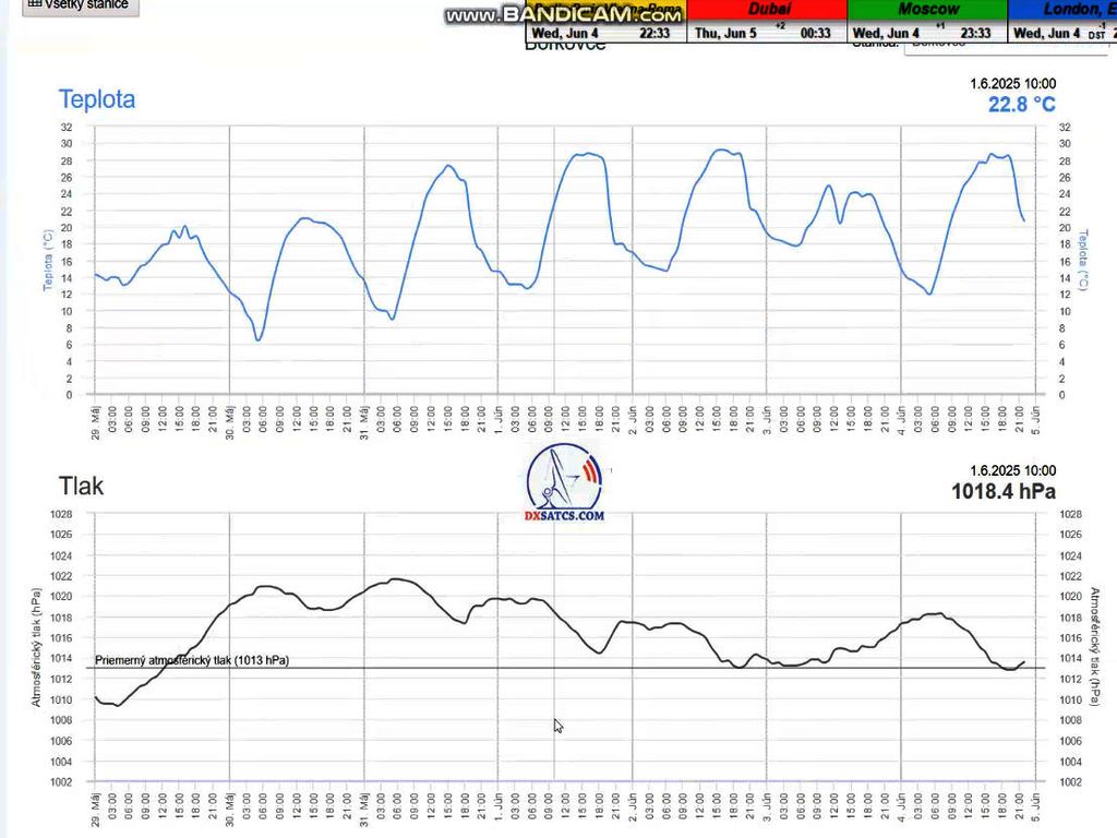 – ohne auch nur einen einzigen Ausfall im Zusammenhang mit Lock-Status oder Pixelbildung.Ein Spitzenwert der SNR-Qualität von 10,7 dB wurde gemessen, und der einzige registrierte Abfall der blauen Qualitätskurve Q auf ein Niveau von Q = 40 % trat exakt einmal auf – nämlich nach dem Eintreffen einer Gewitterwolkenfront und dem Beginn von Regenschauern am 1.6.2025 um genau 20:35 MEZ, wie durch die gemessenen Niederschlagsdaten der Quelle shmu.sk eindeutig belegt wird.