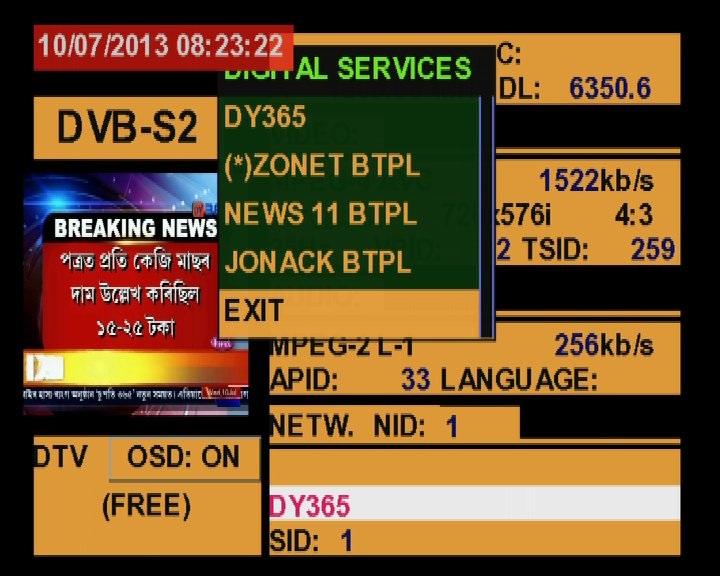 4 180 H @ 969.20 MHz @ SPAN 50 MHz : 83°E Kolkata TV![]()