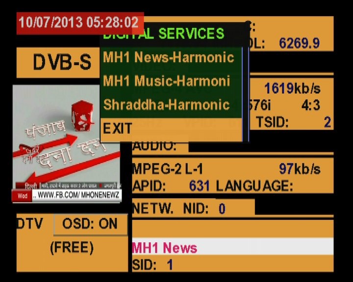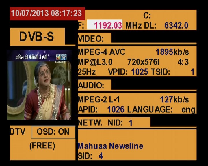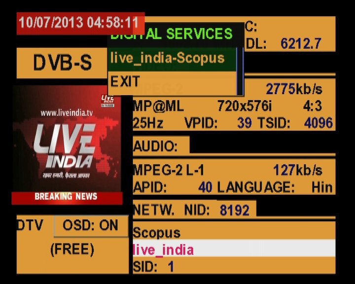 4 087 H @ 1 062.70 MHz @ SPAN 50 MHz : 83°E Live India![]()
