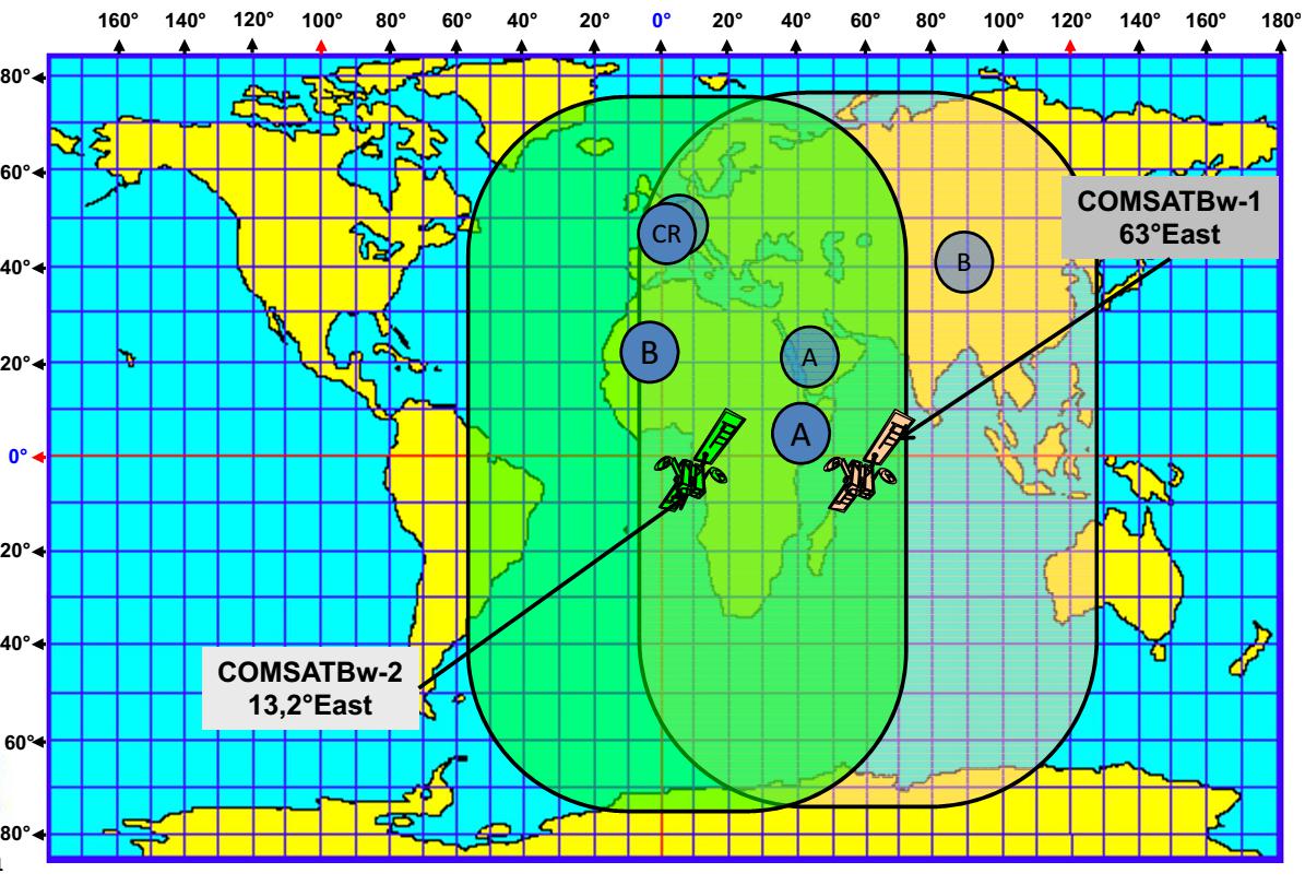 ►►COMSATBw-1-λ=63°E-X band : COMSATBw-1+COMSATBw-2 coverage-footprint-beam - X band